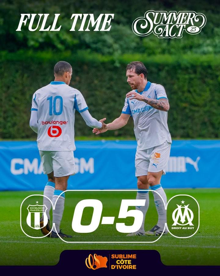 友谊赛,马赛以5-0的大比分战胜荷丙球队马斯路易斯精英,格林伍德11分钟完成帽子戏法。