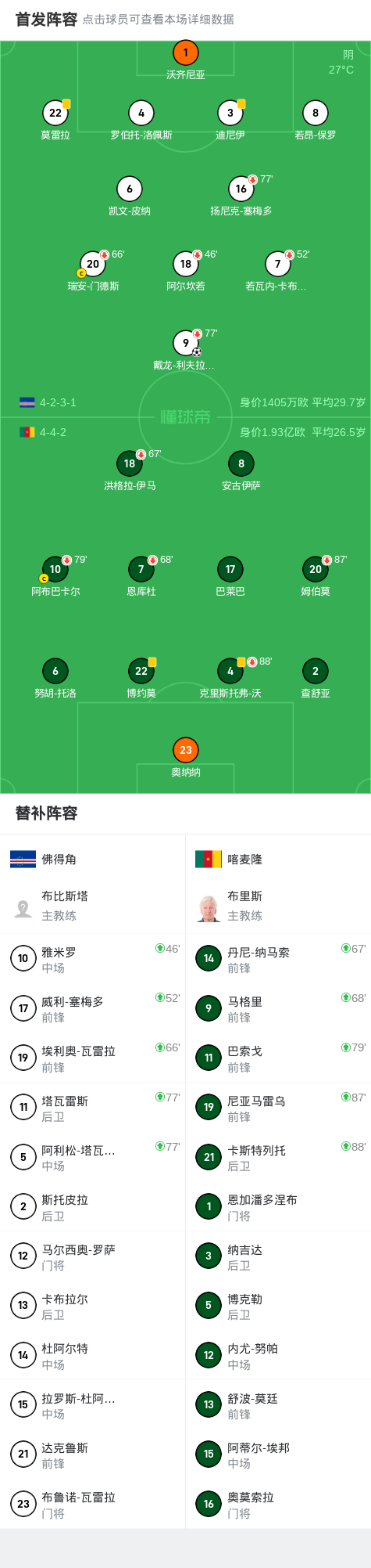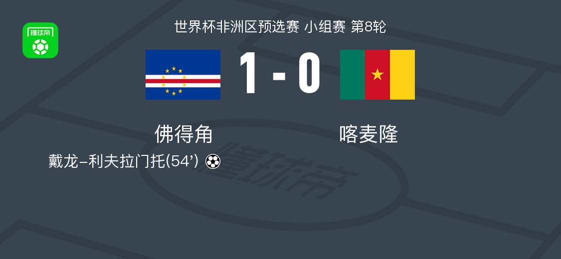 9月10日,世界杯非洲区预选赛小组赛第8轮,佛得角与喀麦隆展开较量。比赛中,佛得角球员戴龙-利夫拉门托完成破门,攻入全场唯一进球。最终,佛得角以1-0的比分战胜喀麦隆。
