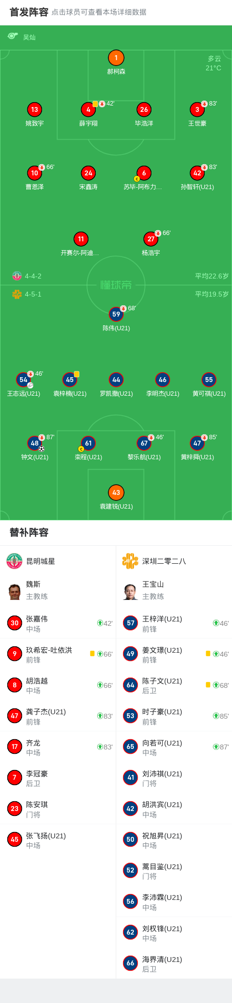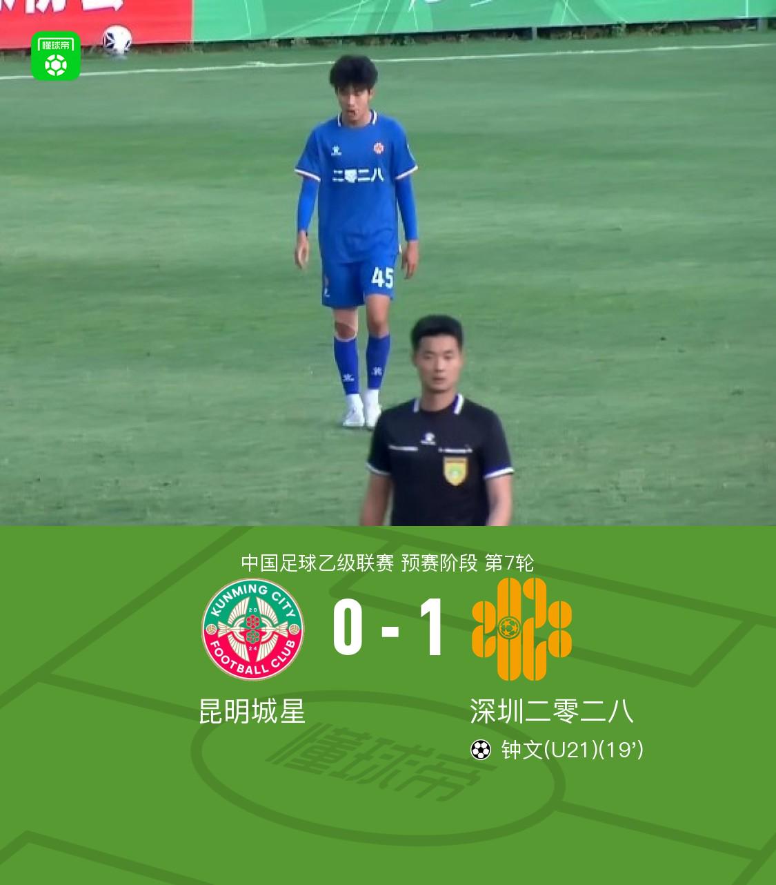 北京时间5月2日,中国足球乙级联赛预赛阶段第7轮,昆明城星主场迎战深圳二零二八。比赛中,深圳二零二八凭借钟文的进球取得领先。最终,昆明城星0-1不敌深圳二零二八。