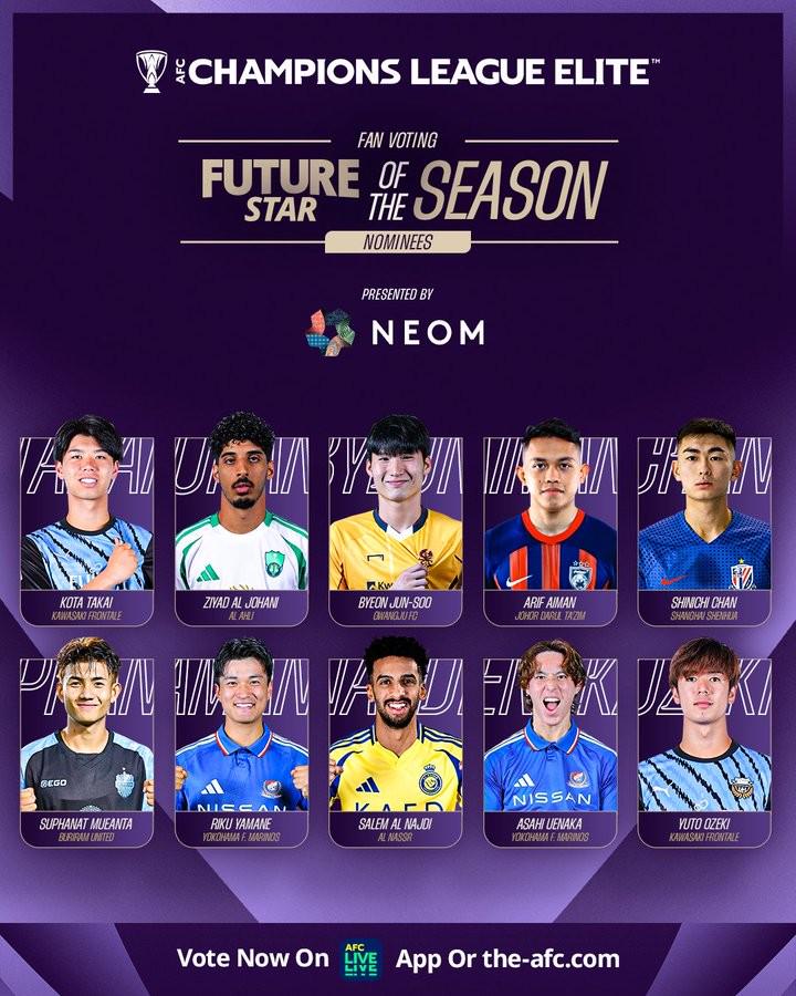 本赛季亚冠精英联赛最佳年轻球员候选名单