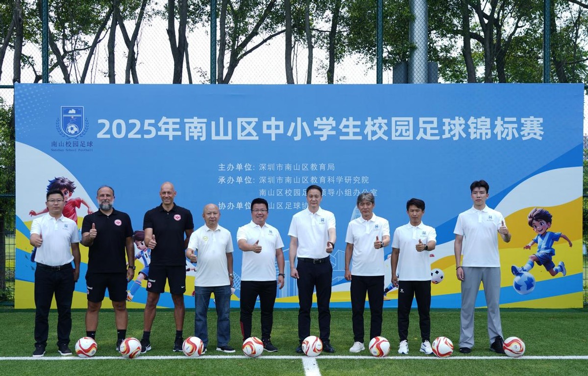 近年来,南山区委区政府不遗余力发展校园足球,2021年6月南山区政府与法兰克福签订《战略合作协议》。2021年8月,南山外国语学校(集团)与法兰克福正式答署《合作协议》,法兰克福项目正式落地深圳南外。从南山外国语学校(集团)利用集团化办学优势与法兰克福俱乐部携手打造幼小初高15年一贯制“金字塔”校园足球梯队体系,到越来越多学校开展“班超”联赛,左手抓校园足球普及,右手抓精英足球队员培养,创建了以南外为代表的一批在国内享有盛名全国足球特色学校,配备了一批优秀足球后备人才,让“中国足球要搞上去,从娃娃抓起”的号召在南山区变成生动实践。