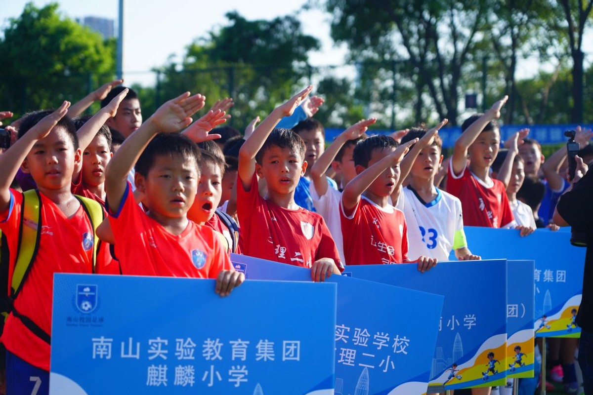 记者王伟报道 江苏苏超联赛非常火爆,深圳市南山区也有“班超+校超联赛”。 6月6日伴随最后一场终场哨响,2025年深圳市南山区中小学生校园足球锦标赛,即“南山校超”,在法兰克福(深圳南山)足球训练中心落下帷幕。记者了解到,这场历时6天的“南山校超”首秀,共集结来自南山区的98支中小学队伍、1560位足球小将, 229场激情对决,踢进1966粒精彩进球。