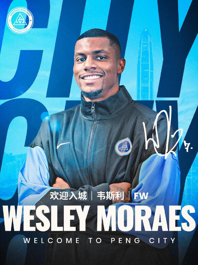 深圳新鹏城足球俱乐部今日宣布,巴西前锋韦斯利·莫赖斯(Wesley Moraes)正式加盟球队。