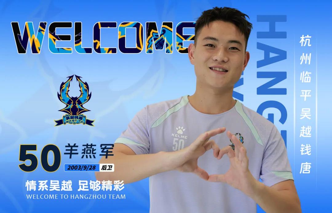 北京时间7月10日,杭州临平吴越官方宣布 邵仁哲、祖鹏超、孙中豪和羊燕军 加盟俱乐部。