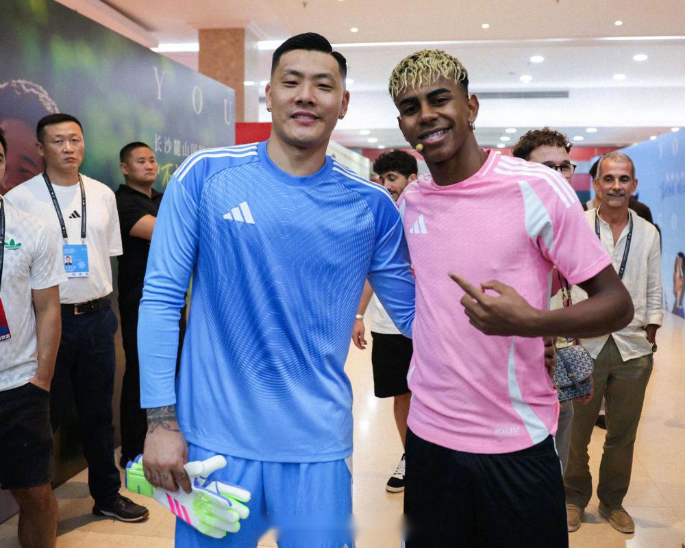 王大雷在社交媒体晒出他和亚马尔的合照,并表示开心能参与到校园足球高中联赛总决赛。