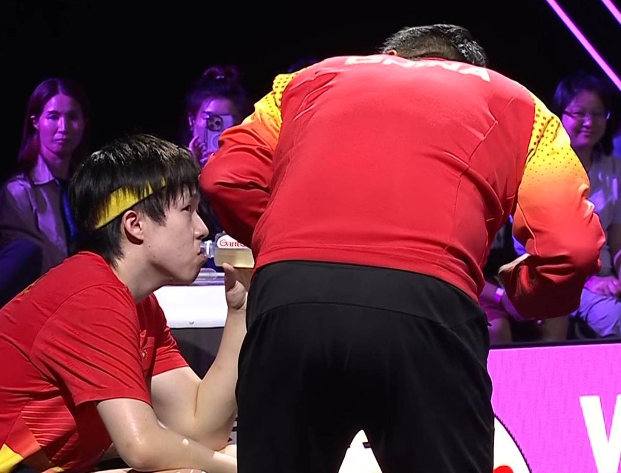 第三局张本智和领先后被追至3-3平,紧接着拉开差距9-4领先连输2球用掉暂停权,随后10-7拿到3个局点,最终以11-8拿下,距离夺冠仅一步之遥,王楚钦情况不妙。