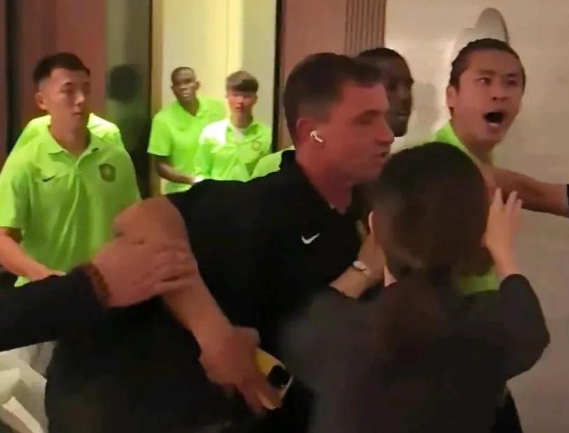 有媒体报道中晒出视频,其实刚刚开始氛围和谐!塞尔吉尼奥、张玉宁等人都应了球迷的要求为他们签名。签名完成之后,张玉宁等人即将进入电梯,准备到达休息楼层。场外有不和谐的声音出现。结果队长王刚和张玉宁从电梯里冲了出来,怒斥球迷!王刚恶语相向,而张玉宁更是大声斥责球迷不要瞎说。张玉宁看架势要冲向球迷要一个说法。好在随后队友以及现场安保人员拉住了张玉宁,冲突才停止。
