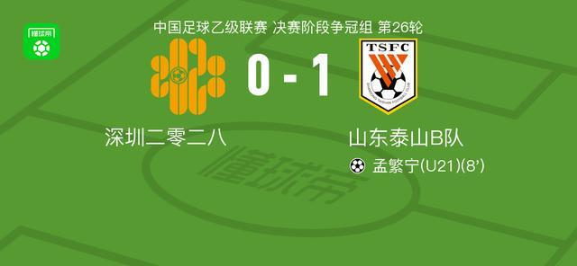 北京时间9月21日,中国足球乙级联赛决赛阶段争冠组第26轮展开较量,深圳二零二八坐镇主场迎战山东泰山B队。比赛中,艾孜海尔-塔西麦麦提送出精准助攻,孟繁宁冷静破门,为山东泰山B队取得领先。此后双方均未能改写比分,最终山东泰山B队客场以1比0战胜深圳二零二八。