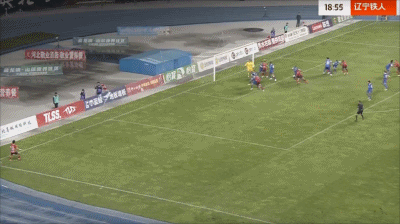 第19分钟,辽宁铁人角球开到禁区被解围,田依浓凌空扫射打飞