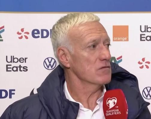 北京时间10月14日,欧洲预选赛第一阶段小组赛第8轮,冰岛2-2法国。赛后,法国队主教练德尚接受了采访。